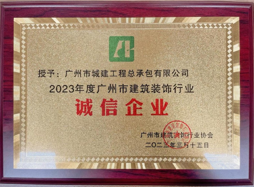 近日,廣州市建筑裝飾行業(yè)協(xié)會(huì)首次舉辦“誠信企業(yè)”評選活動(dòng),對企業(yè)依法納稅、合同履約、安全生產(chǎn)、社會(huì)誠信等管理工作進(jìn)行考察評定。公司積極申報(bào),經(jīng)評審委員會(huì)評定、向社會(huì)公示等程序,成功評為“2023年度廣州市建筑裝飾行業(yè)誠信企業(yè)”,成為首批124家達(dá)標(biāo)企業(yè)之一。