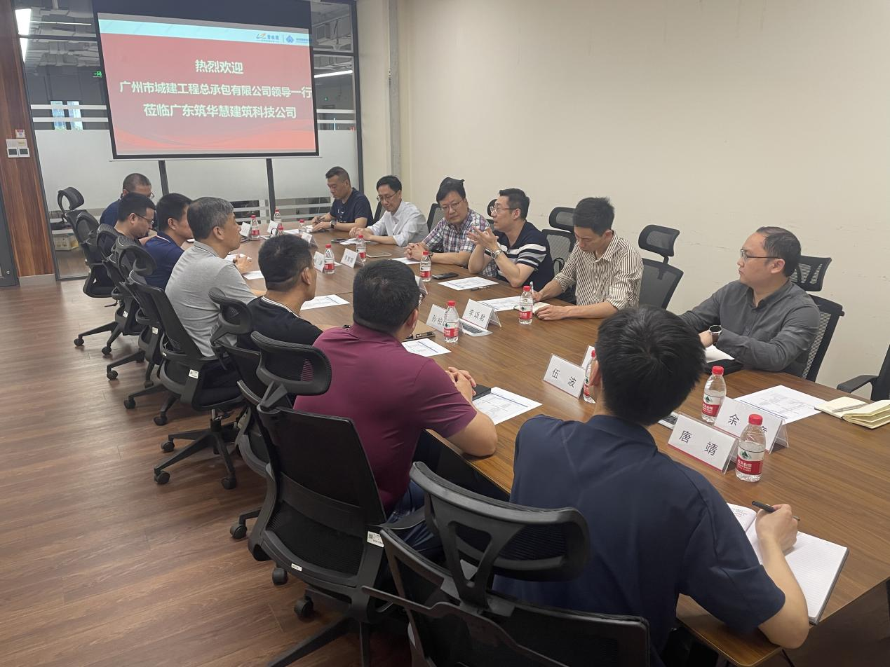 參觀展廳后,公司團隊與廣東筑華慧建筑科技有限公司舉行了座談會,雙方就智能建造技術進行了深入交流,探討未來業務合作的方向,力爭整合科技創新資源,加快形成新質生產力,推動公司在未來實現傳統產業高科技、高效能、高質量發展。