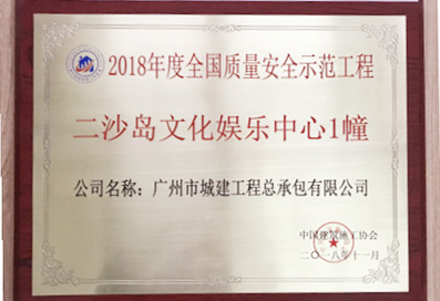 二沙島文立方獲全國質(zhì)量安全示范工程