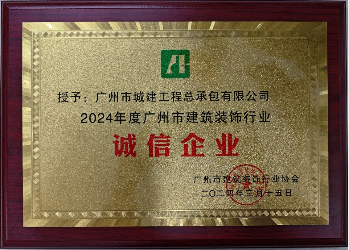 近日,廣州市建筑裝飾行業(yè)協(xié)會(huì)舉辦第二屆“誠信企業(yè)”評(píng)選活動(dòng),對(duì)企業(yè)依法納稅、合同履約、安全生產(chǎn)、社會(huì)誠信等管理工作進(jìn)行考察評(píng)定。公司積極申報(bào),經(jīng)評(píng)審委員會(huì)評(píng)定、向社會(huì)公示等程序,成功復(fù)評(píng)為“2024年度廣州市建筑裝...